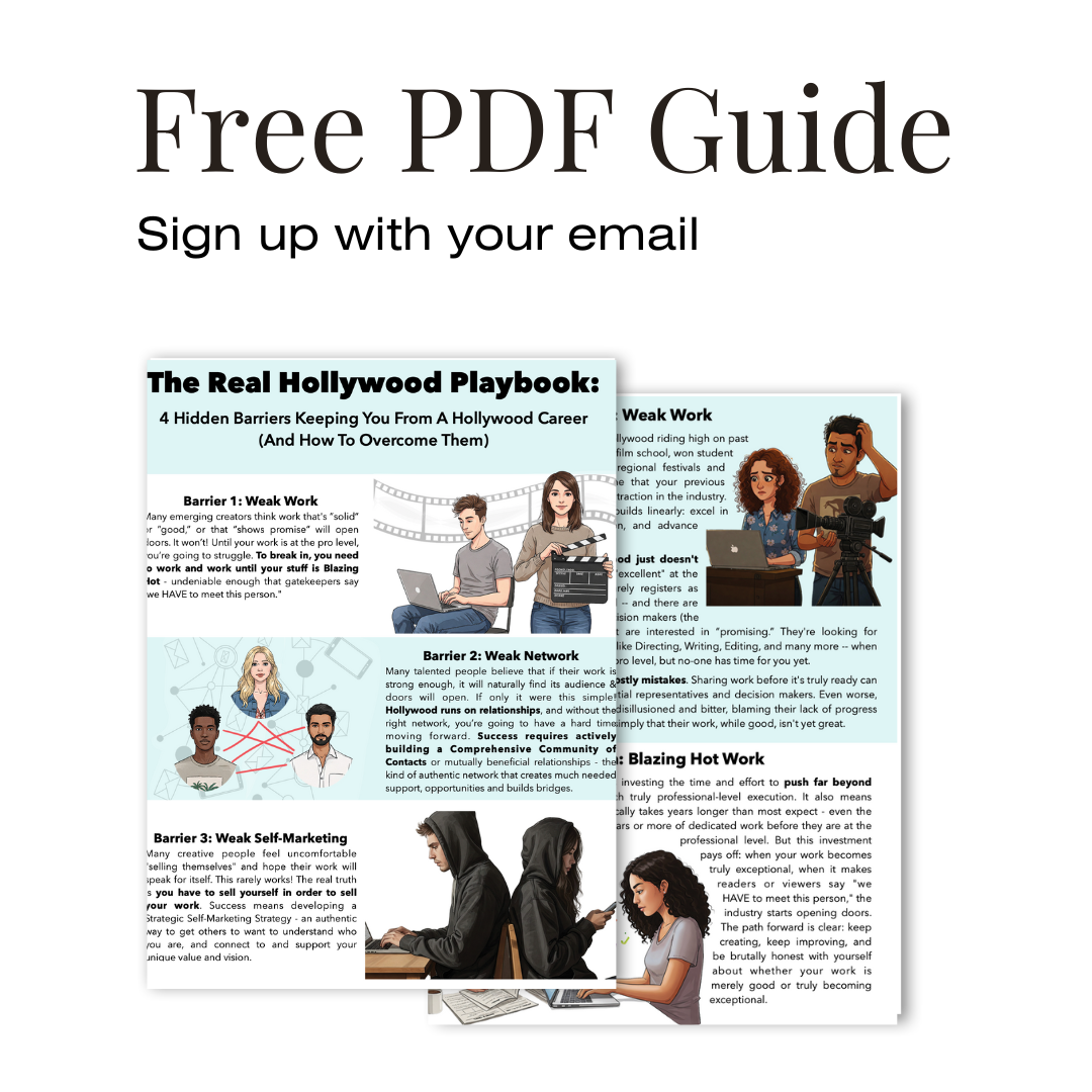 I’ll also send you a few high-value emails, packed with tools that will help you launch your Hollywood career. Think advice, tips, tricks, and examples of what to do — and what not to do — laser-focused on breaking in and staying in this exciting and challenging business.